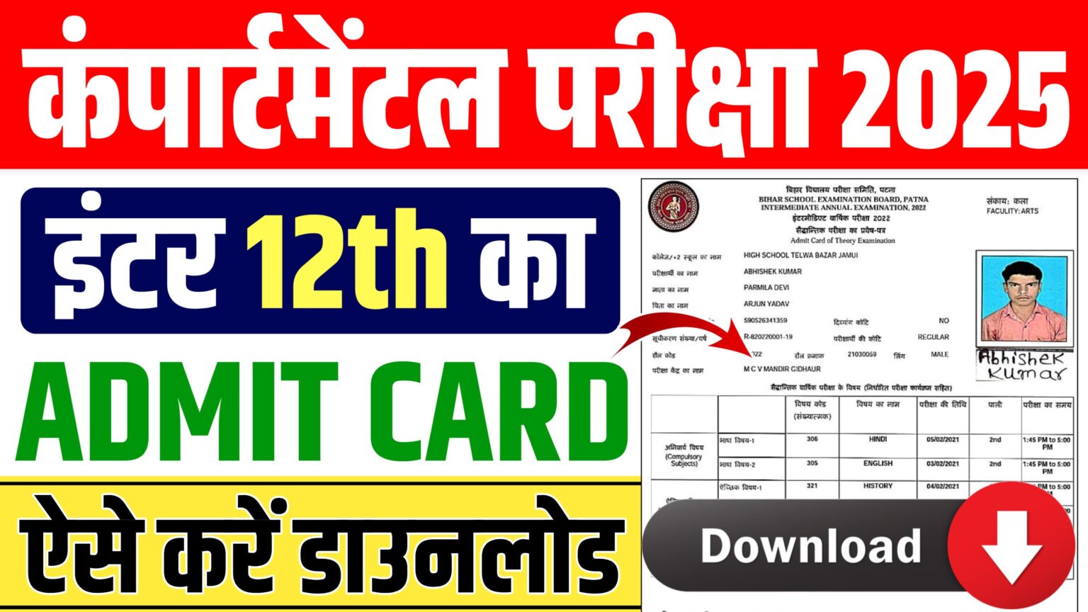 Bihar Board 12th Compartment Admit Card 2025 जारी कर दिया गया है। जिन विद्यार्थियों ने इंटरमीडिएट विशेष परीक्षा या कम्पार्टमेंटल परीक्षा 2025 के लिए आवेदन किया है, उनके लिए यह बहुत ही महत्वपूर्ण सूचना है। इस परीक्षा में वही विद्यार्थी शामिल हो सकते हैं जो पूर्व में सेंटर-अप परीक्षा या जांच परीक्षा में सफल घोषित किए गए हैं। ऐसे सभी परीक्षार्थी Bihar Board Inter Compartment Admit Card 2025 को बिहार बोर्ड की ऑफिशियल वेबसाइट से डाउनलोड कर सकते हैं। इस लेख में हम आपको बताएंगे कि How To Download Bihar Board 12th Compartmental Admit Card 2025? इसके लिए जरूरी दिशा-निर्देश, परीक्षा की तिथि, महत्वपूर्ण लिंक, और अन्य जरूरी जानकारी।