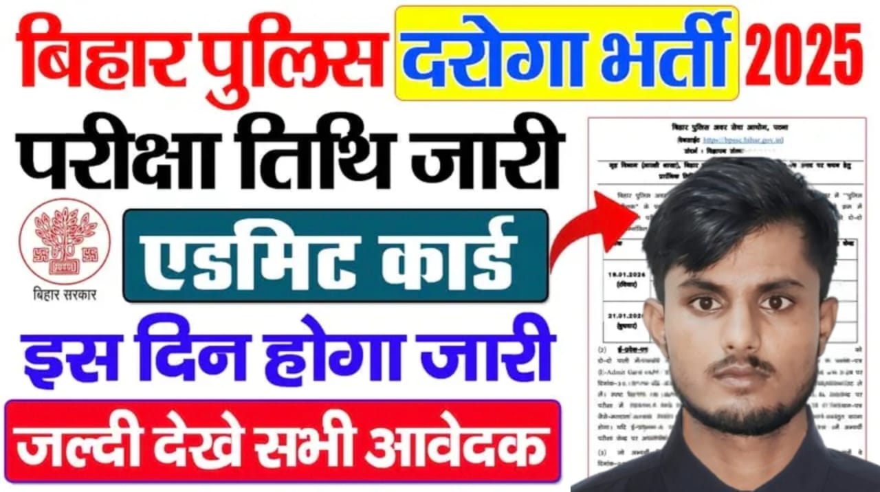 ihar Daroga Admit Card 2025: क्या आपने बिहार पुलिस में दरोगा के पदों पर भर्ती के लिए ऑनलाइन आवेदन फॉर्म भरा था और अब आप 18 जनवरी एवं 21 जनवरी 2026 को आयोजित की जा रही परीक्षा के लिए एडमिट कार्ड के जारी होने का इंतजार कर रहे हैं, तो आपके लिए एक बहुत बड़ी खुशखबरी निकल कर आ रही है क्योंकि बिहार पुलिस अवर सेवा आयोग, पटना द्वारा एडमिट कार्ड को 30 दिसंबर 2025 को जारी कर दिया जाएगा।