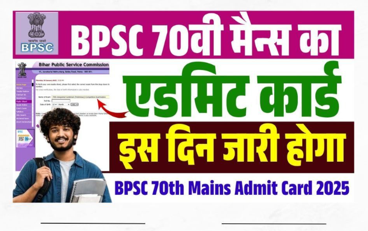BPSC 70th Mains Admit Card 2025 : नमस्कार दोस्तों, क्या आप भी BPSC 70वीं मुख्य परीक्षा 2025 में शामिल होने वाले अभ्यर्थियों में से एक हैं और बेसब्री से एडमिट कार्ड जारी होने का इंतजार कर रहे हैं? यदि हां, तो यह लेख आपके लिए ही तैयार किया गया है। यहां आपको विस्तार से बताया जाएगा कि BPSC 70th Mains Admit Card 2025 कब जारी होगा, इसे कैसे डाउनलोड करें और परीक्षा का पूरा शेड्यूल क्या रहेगा।