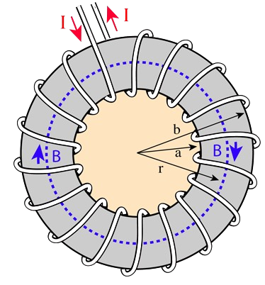 4. टोरॉइड के भीतर चुंबकीय क्षेत्र की गणना।