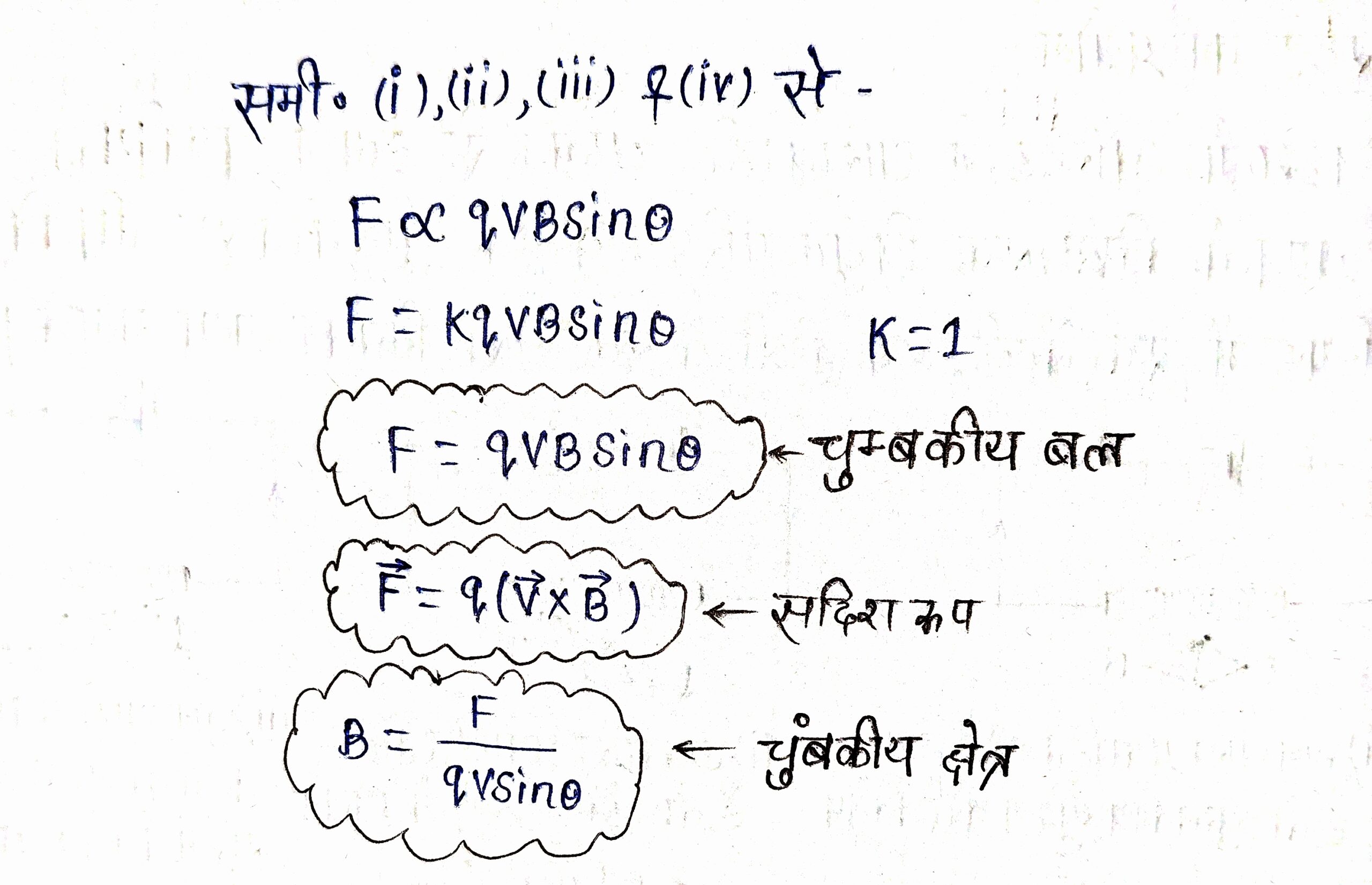 F α q ——-i ,F α v —–ii, F α B —–iii ,F α sinθ —iv