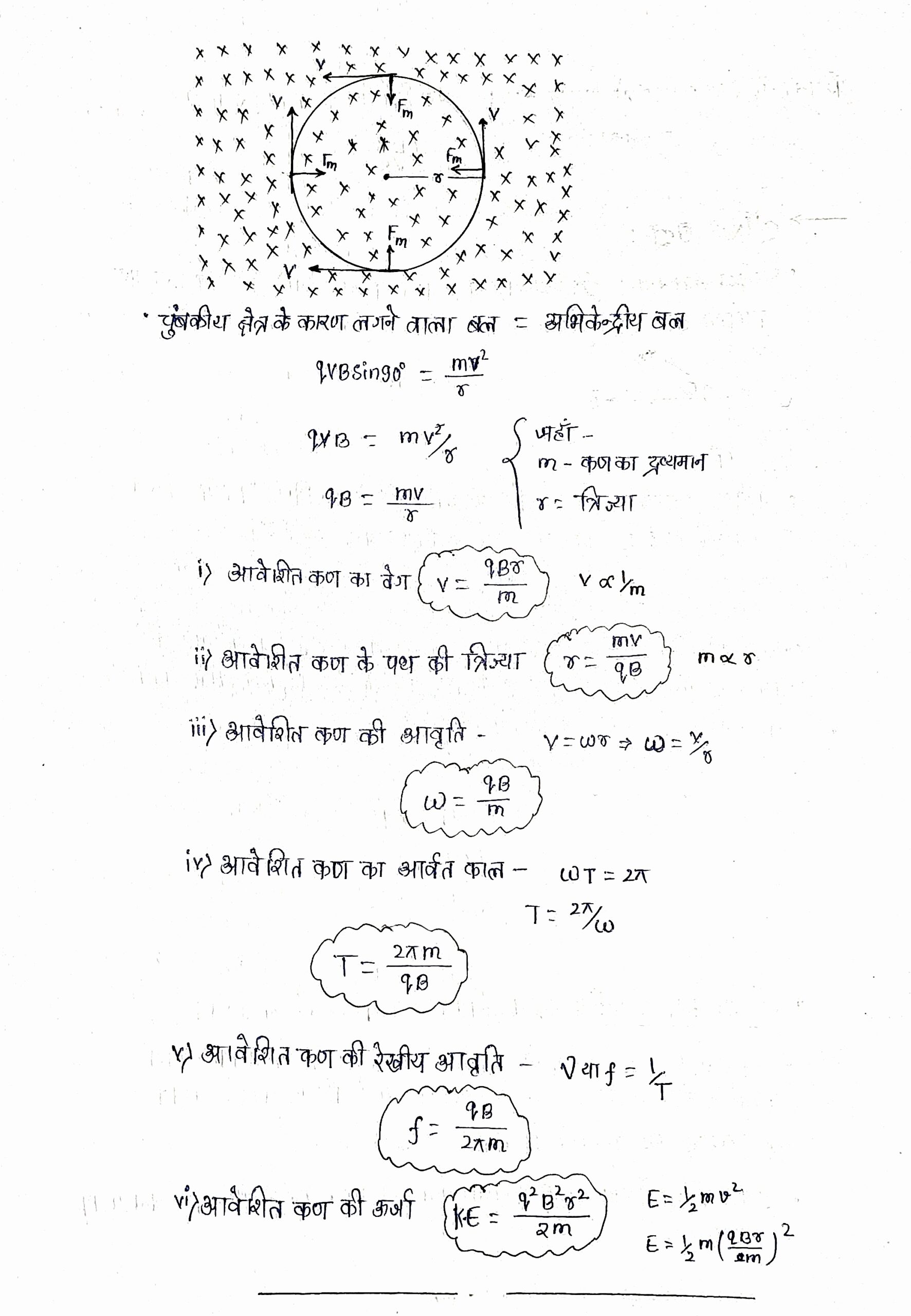 • चुंबकीय क्षेत्र के कारण लगने वाला बल इसे आवश्यक अभिकेंद्रीय बल प्रदान करता हैं।