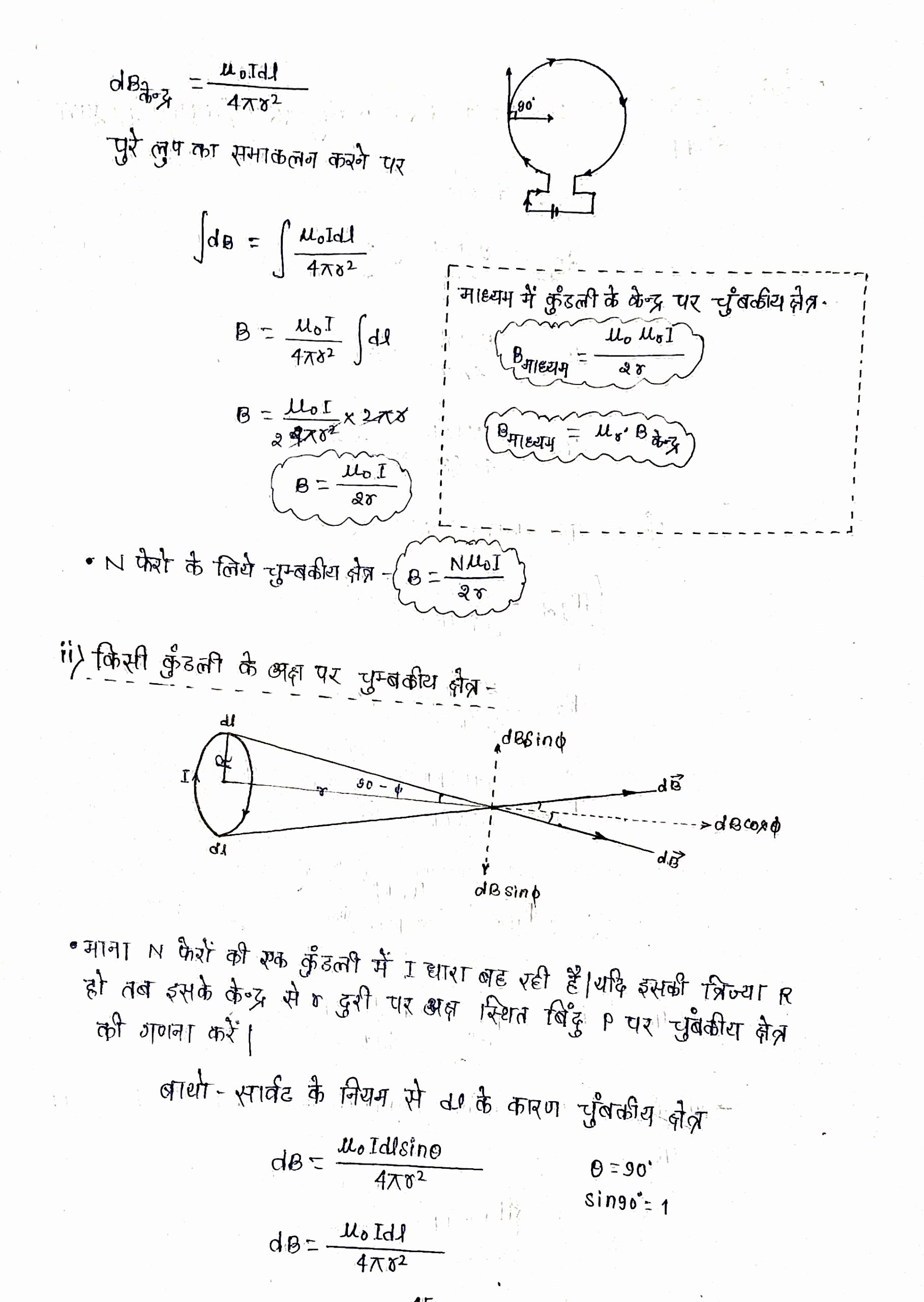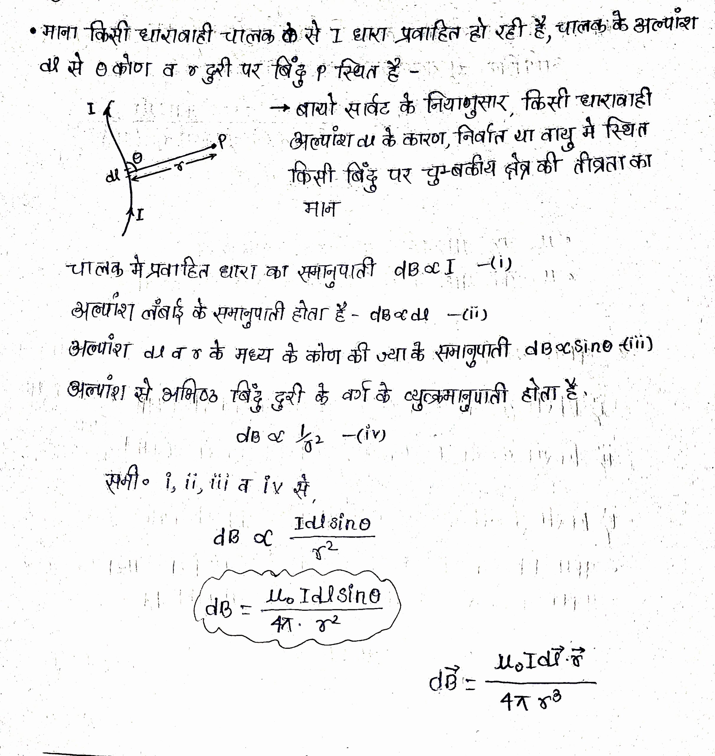 dBकेंद्र =(μoIdlsinθ)/4πr2