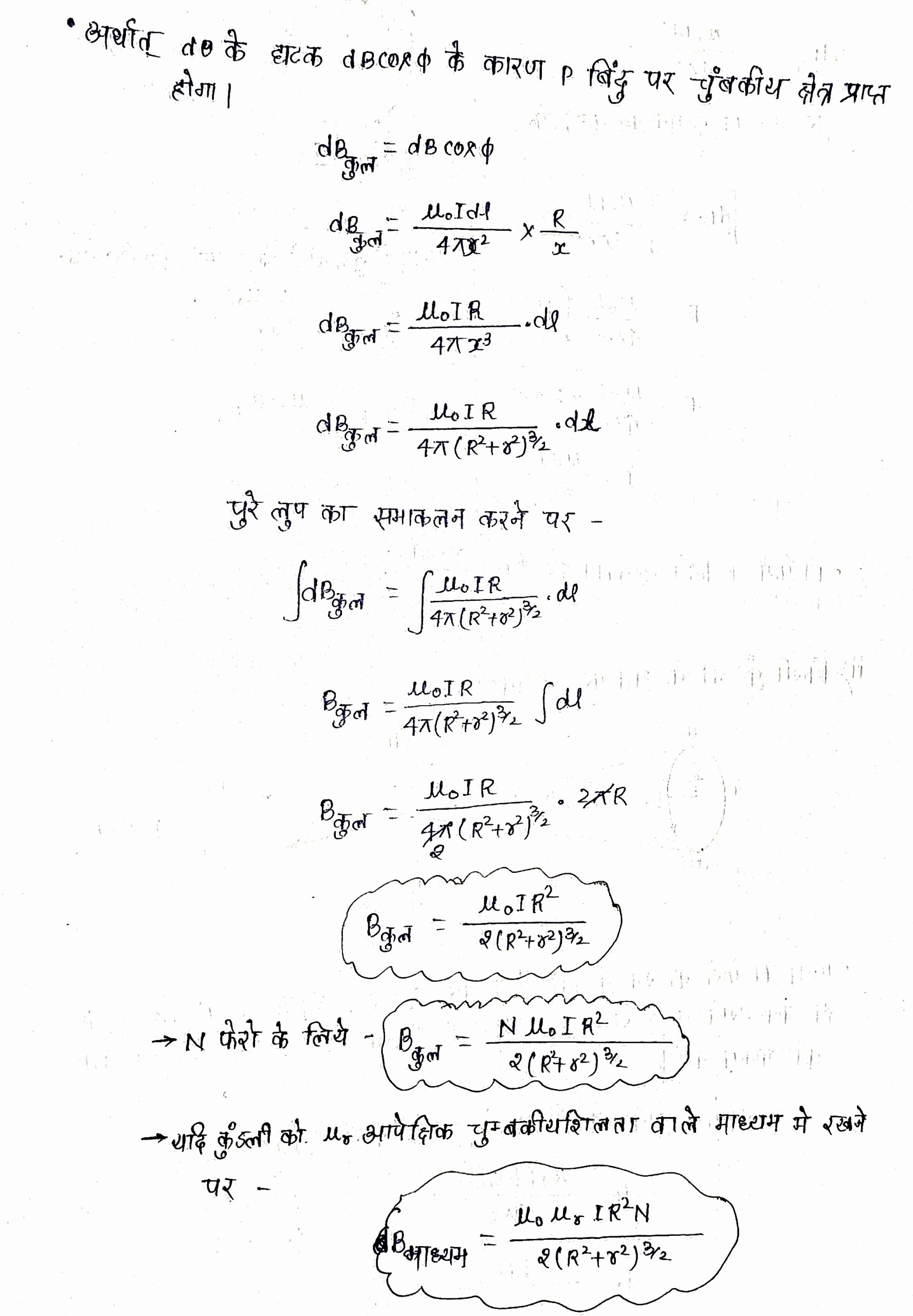 1.किसी कुंडली के केंद्र पर चुंबकीय क्षेत्र की गणना।