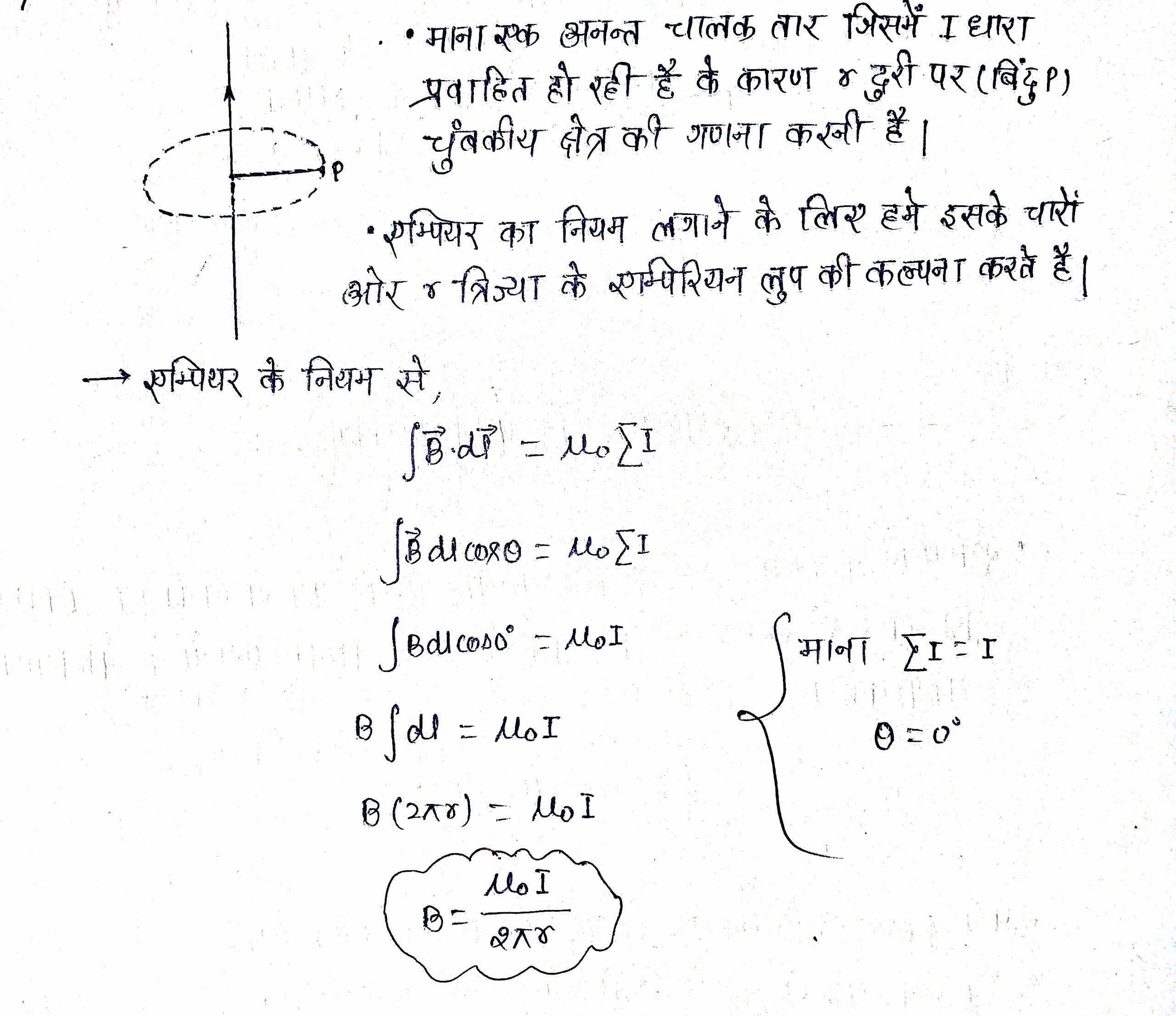 1. किसी अन्नत धारावाही चालक तार के कारण चुंबकीय क्षेत्र ।