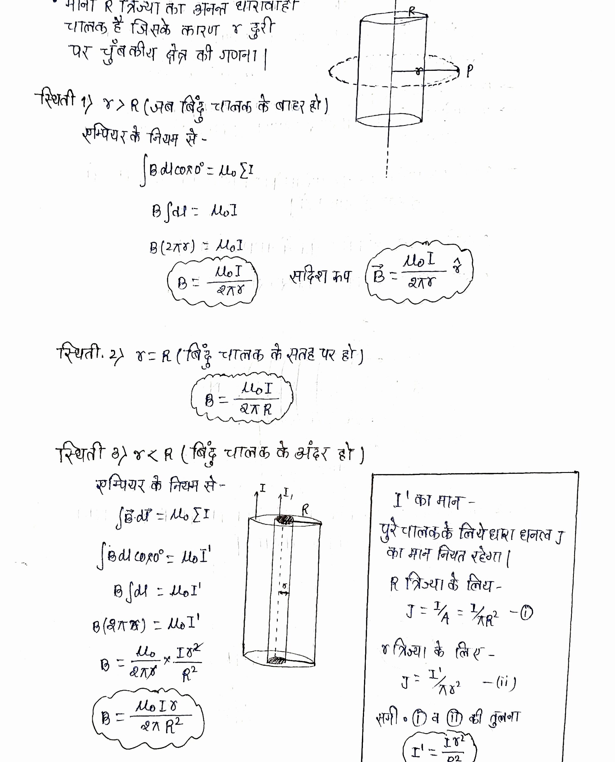 ii. किसी बेलनाकार धारावाही चालक के कारण चुंबकीय क्षेत्र