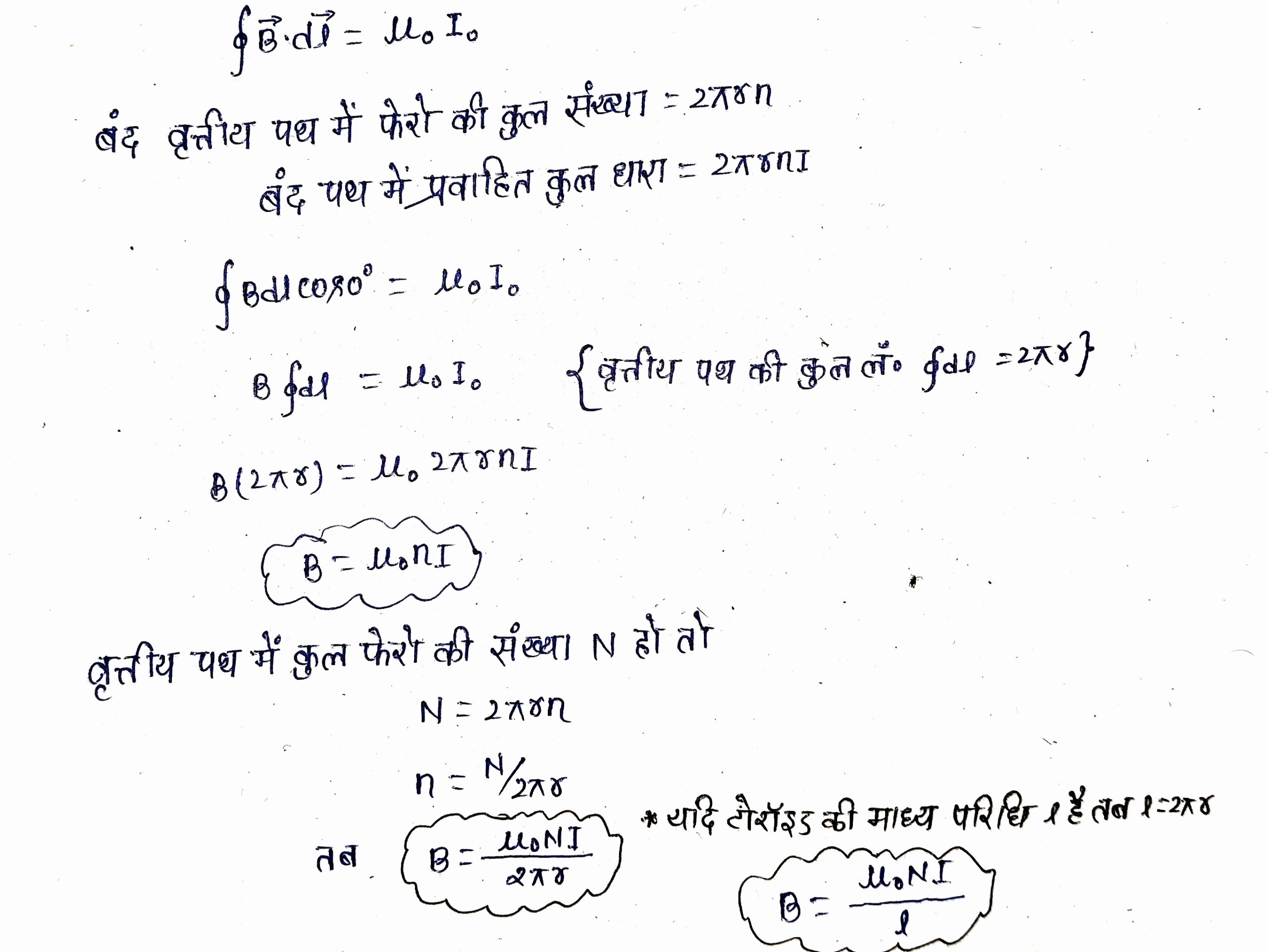 माना कि एक धारावाही कुंडली है जिसमे I धारा प्रवाहित हो रही है तो N फेरो में चुम्बकीय क्षेत्र –
