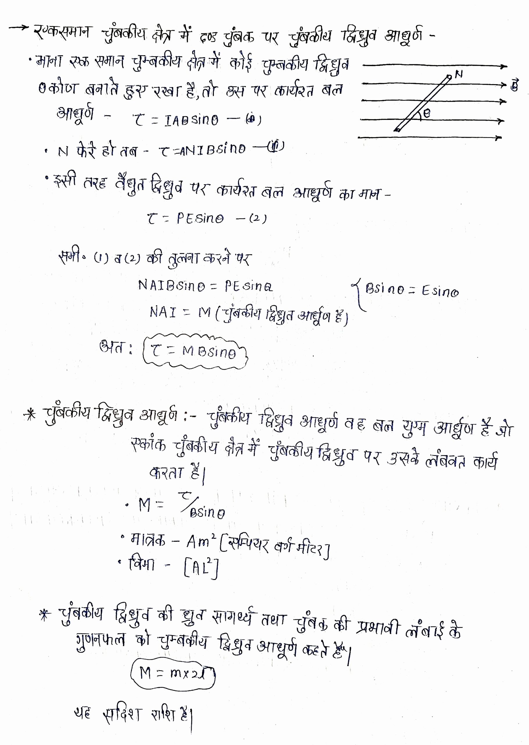 • प्रवाहित द्विध्रुव आघ्रुर्ण M= NIA से