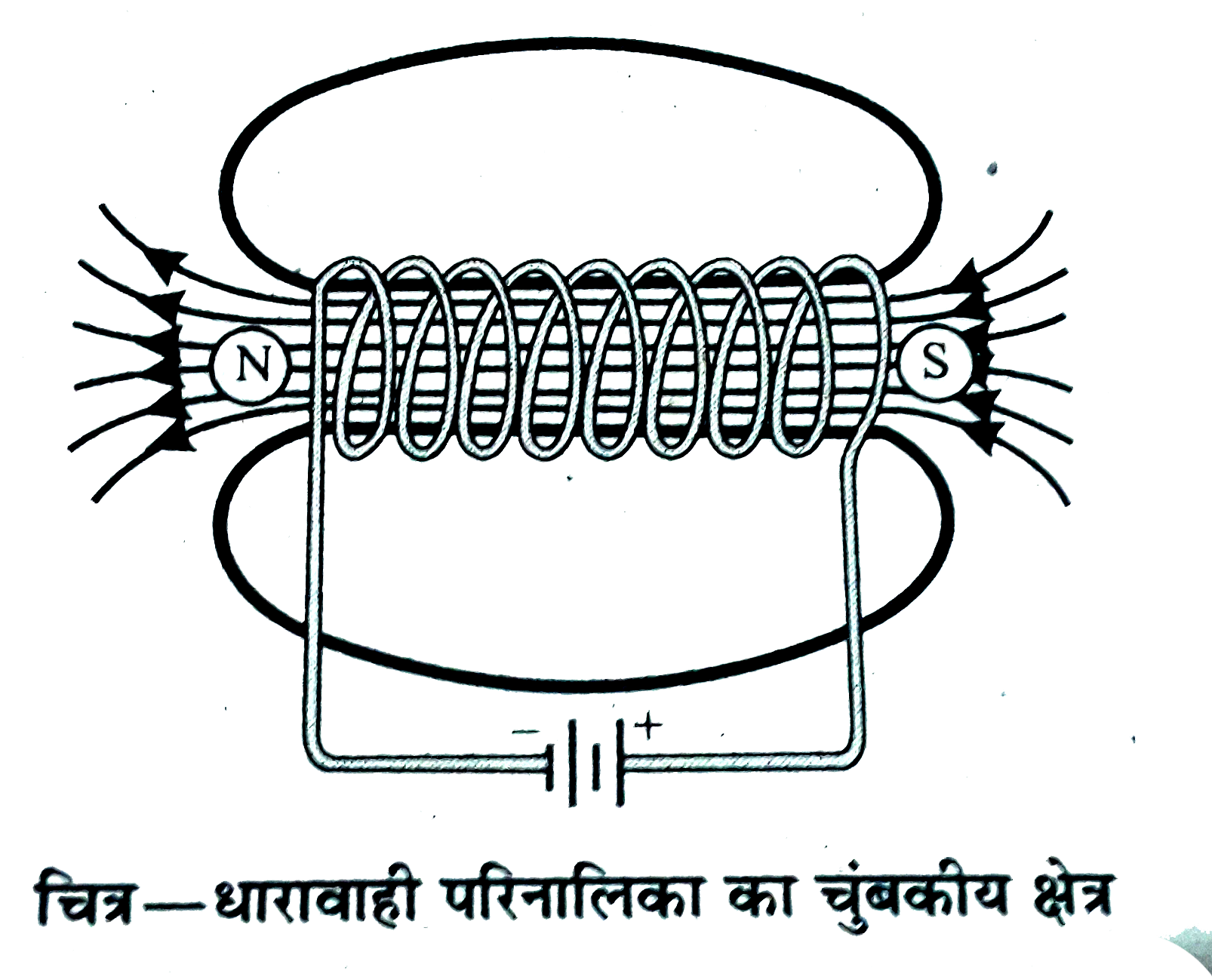 ⇒ धारावाही परिनालिका का एक सीरा N ध्रुव व दूसरा सिर S ध्रुव की तरह व्यवहार करता है।
