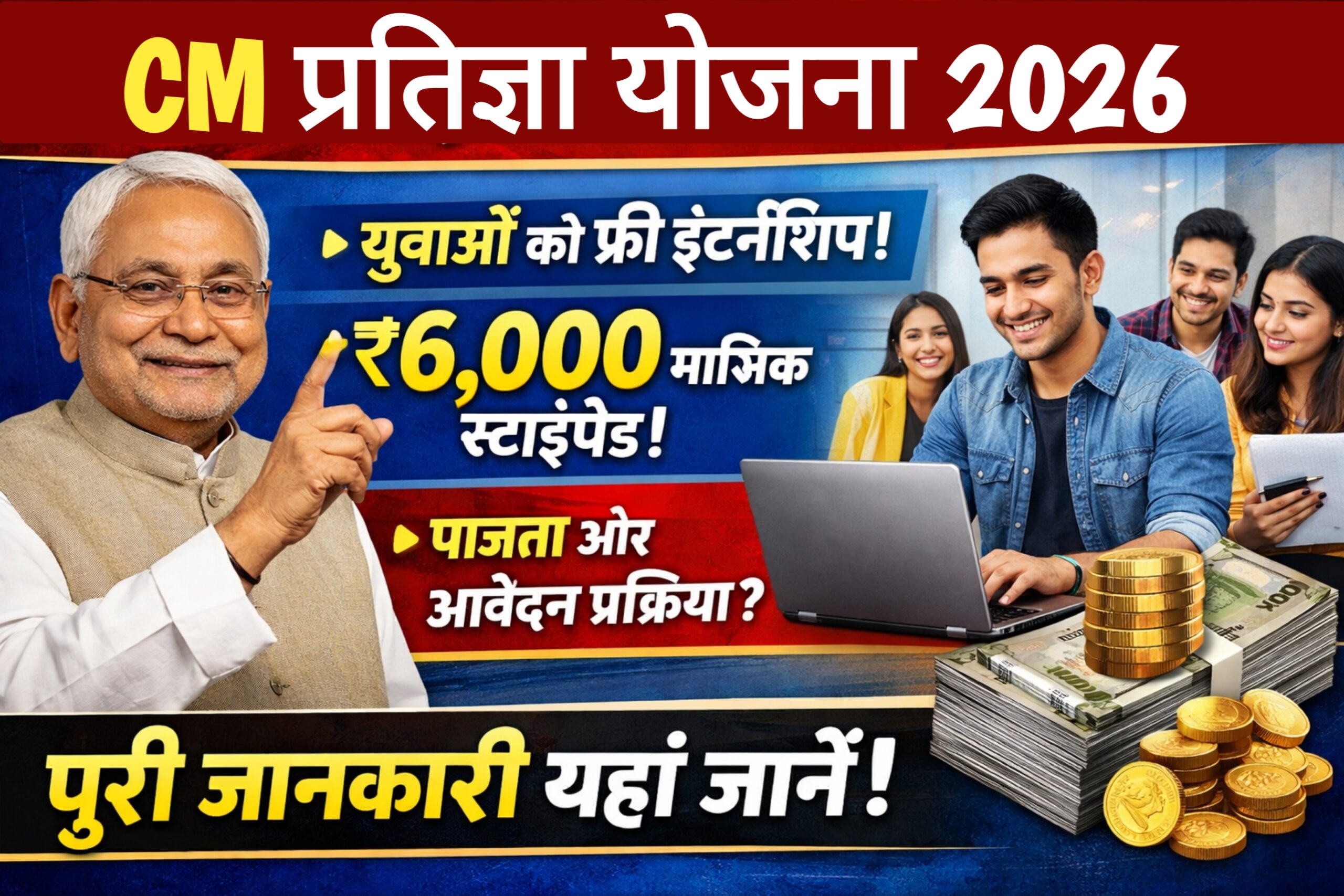 CM Pratigya Yojana 2026: क्या आप बिहार राज्य के बेरोजगार युवा है और आप अपनी पढ़ाई पूरी करने के बाद नौकरी की तलाश कर रहे है, तो आपके लिए एक बहुत बड़ी खुशखबरी निकल कर आ रही है क्योंकि बिहार सरकार की ओर से मुख्यमंत्री प्रतिज्ञा योजना 2026 की शुरुआत की गई है इस योजना के माध्यम से सरकार युवाओं को 3 महीने से लेकर 12 महीने तक की फ्री इंटर्नशिप प्रदान कर रही है और सरकार इस इंटर्नशिप के दौरान युवाओं को हर महीने 4 हजार से 6 हजार रुपए भी प्रदान कर रही है।