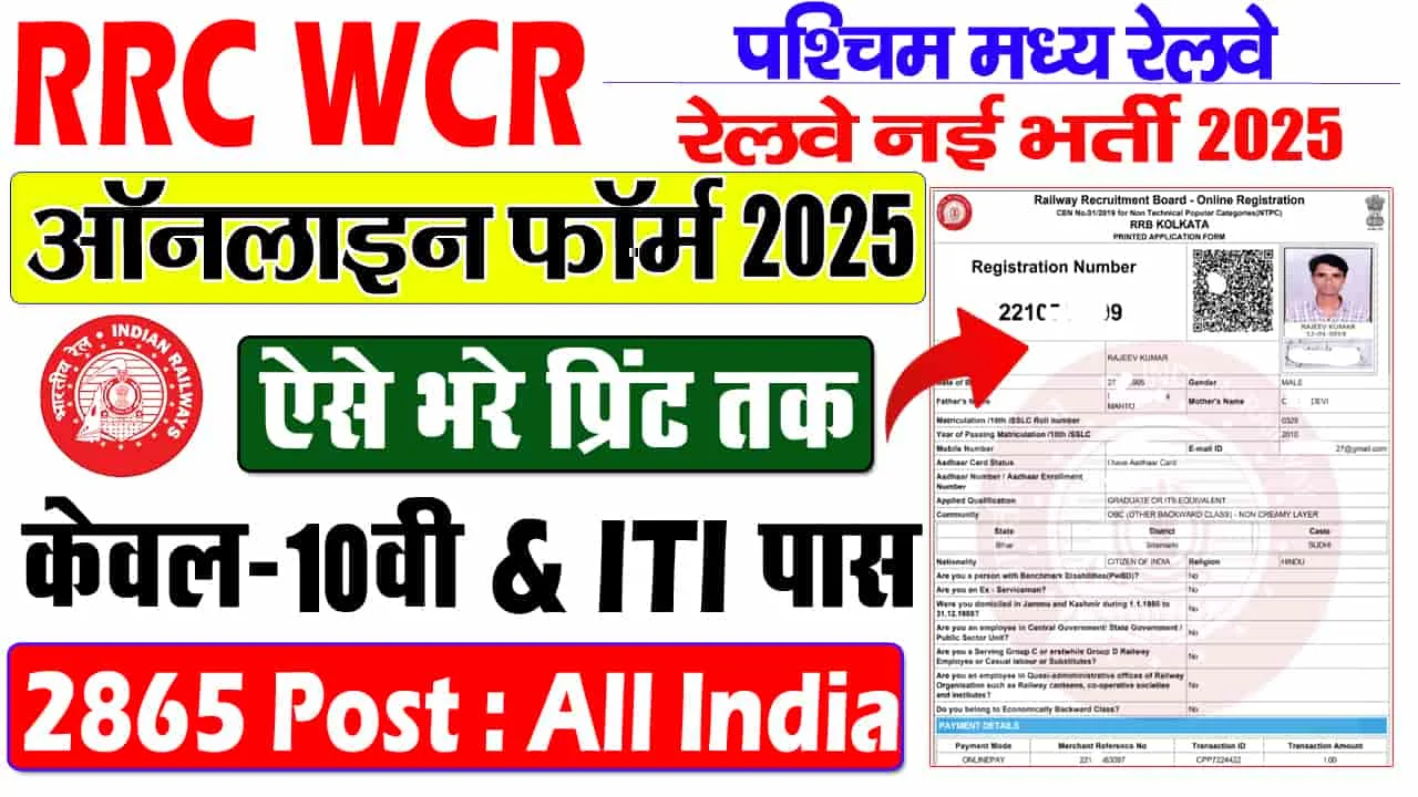 RRC WCR Apprentice Vacancy 2025 : 10वीं पास युवाओं के लिए रेलवे में आई 2865 पदों पर अप्रेन्टिस भर्ती ऐसे करे आवेदन?