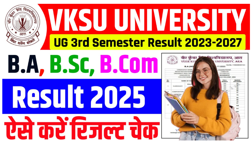 VKSU UG Semester 3 Result 2023-27: नमस्कार दोस्तों Veer Kunwar Singh University Ara के तरफ से Graduation ( BA B.SC B.COM ) सेमेस्टर 3 सत्र 2023-2027 के रिजल्ट को दिनांक 30 मार्च 2025 को जारी किया जाएगा जिसे आप इस आर्टिकल में दिए हुए लिंक के माध्यम से चेक कर सकते हैं।